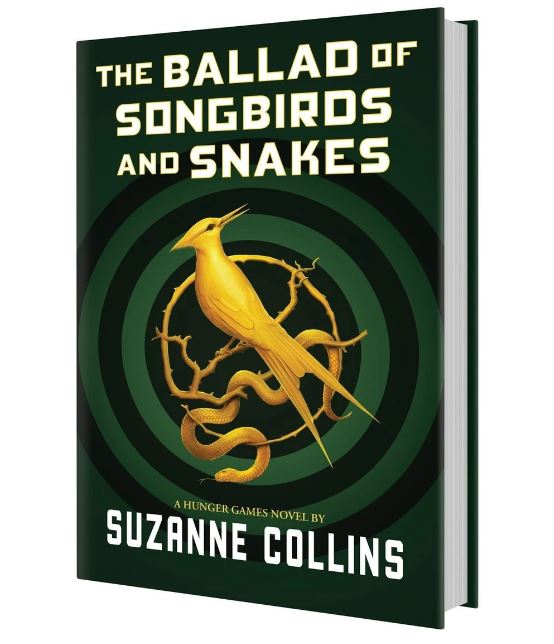 El pasado mes de junio se anunció que Suzanne Collins presentaría un nuevo libro de la saga “Los Juegos del Hambre”. Bien, pues ¡ya tenemos portada y título para esta nueva novela! La autora anunció que el libro se titulará “The ballad of songbirds and snakes”, que traducido sería “La balada de pájaros cantores y serpientes”. Se publicará el 19 de mayo de 2020. La fantástica portada nos presenta un pájaro dorado posado sobre una rama en la que se encuentra una serpiente, también doradas.