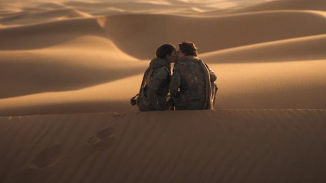 Así, caben resaltar escenas maravillosas como las imágenes de la yihad, esa guerra santa que tanto teme el protagonista, o la escena de Paul aprendiendo a montar un hacedor por primera vez, o la presentación de Feyd-Rautha. En general, cada plano es una gozada. Aun así, a nivel personal creo que esta adaptación, al igual que la primera, abusa un poquito de la repetición de algunas imágenes, pues da la sensación de que uno ve la escena del martilleador o de algún personaje de espaldas mirando al desierto con la capa ondeando al aire unas mil veces a lo largo de las más de dos horas y media de duración.