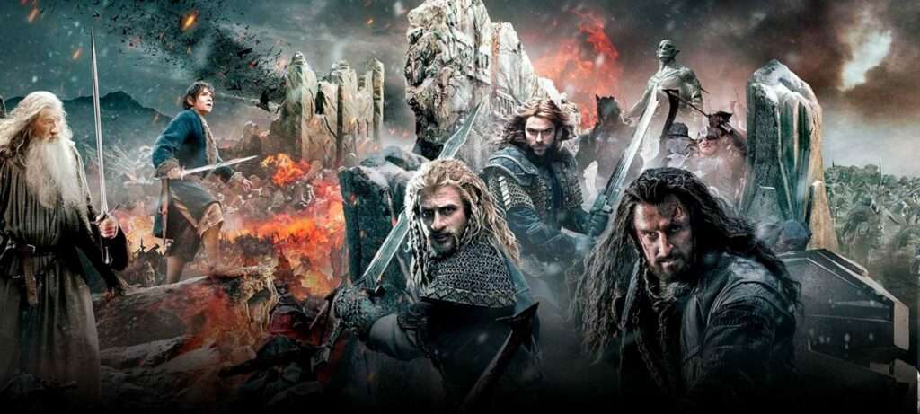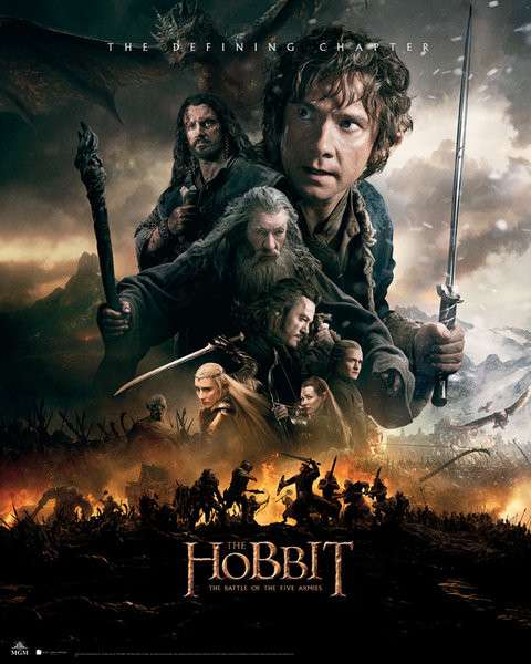“El Hobbit: La Batalla de los Cinco Ejércitos” es la tercera parte de la adaptación de la novela “El Hobbit”, escrita por J.R.R. Tolkien, y perteneciente al mismo universo que el Señor de los Anillos. Se trata de la tercera de tres películas que adaptan esta novela, con un gran respeto y fidelidad hacia el libro en el que se basa, e incluso mejorándolo en ocasiones, lo que la convierte en una de las mejores adaptaciones de libros de los últimos años.