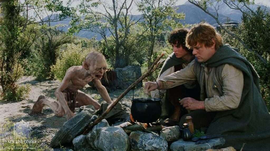 Además, la película también tiene algunos momentos de desarrollo de personajes incluso mejores que el libro, y se nota especialmente en el caso de Frodo y Sam. Ambos hobbits se muestran mucho más cansados por el viaje que en la novela. Y, sobre todo, Frodo se ve mucho más afectado por el Anillo. Mientras que en el libro esto apenas se nota en que el hobbit parece más fatigado, la peli consigue hacer sentir que el Anillo ya ha empezado a obrar cambios en Frodo, especialmente en la escena en la que casi ataca a Sam cuando éste impide que se ponga el Anillo.