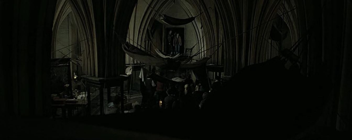 Llega Neville y me encanta lo demacrado que se le ve, dando a entender cómo ha estado luchando durante todo el año, y nos cuenta cómo ha cambiado Hogwarts este último año. Llegamos a la Sala de los Menesteres y nos encontramos a un montón de alumnos acampando allí, ven a Harry y empiezan a aplaudir, con el tema principal de Harry Potter de fondo, y el momento no puede ser más épico. Maravilloso.