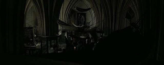 Estupendo también cómo Voldemort se entera de que Harry va detrás de sus Horrocruxes y su incredulidad, aunque me habría gustado que en los flashbacks se hubieran mostrado los lugares donde estaban escondidos, como la cueva, y no sólo el emblema de las casas de Hogwarts de los dos últimos. Y más o menos se deja entrever el enfado de Voldemort ante ello, aunque en el libro este momento era aún más duro, pues mataba a todos los que había en ese momento en la habitación cuando le daban la noticia de que faltaba la copa de Hufflepuff.